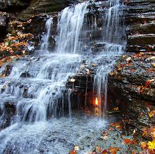 В штате Нью-Йорк, в парке Chestnut Ridge Park, скрывается необычный водопад, известный как Eternal Flame Falls. За струями воды, прямо в нише скалы, горит небольшой огонь.