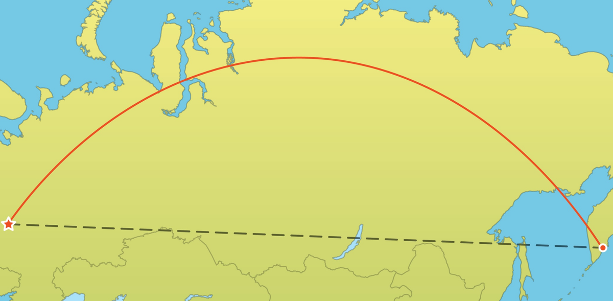 Главная причина «искривления» маршрутов — сама форма нашей планеты. Земля — шар, а большинство карт, которые мы видим, плоские. На таких картах кратчайший путь действительно выглядит как прямая линия. Но в реальности самый короткий маршрут — это дуга, называемая ортодромией или линией большого круга.