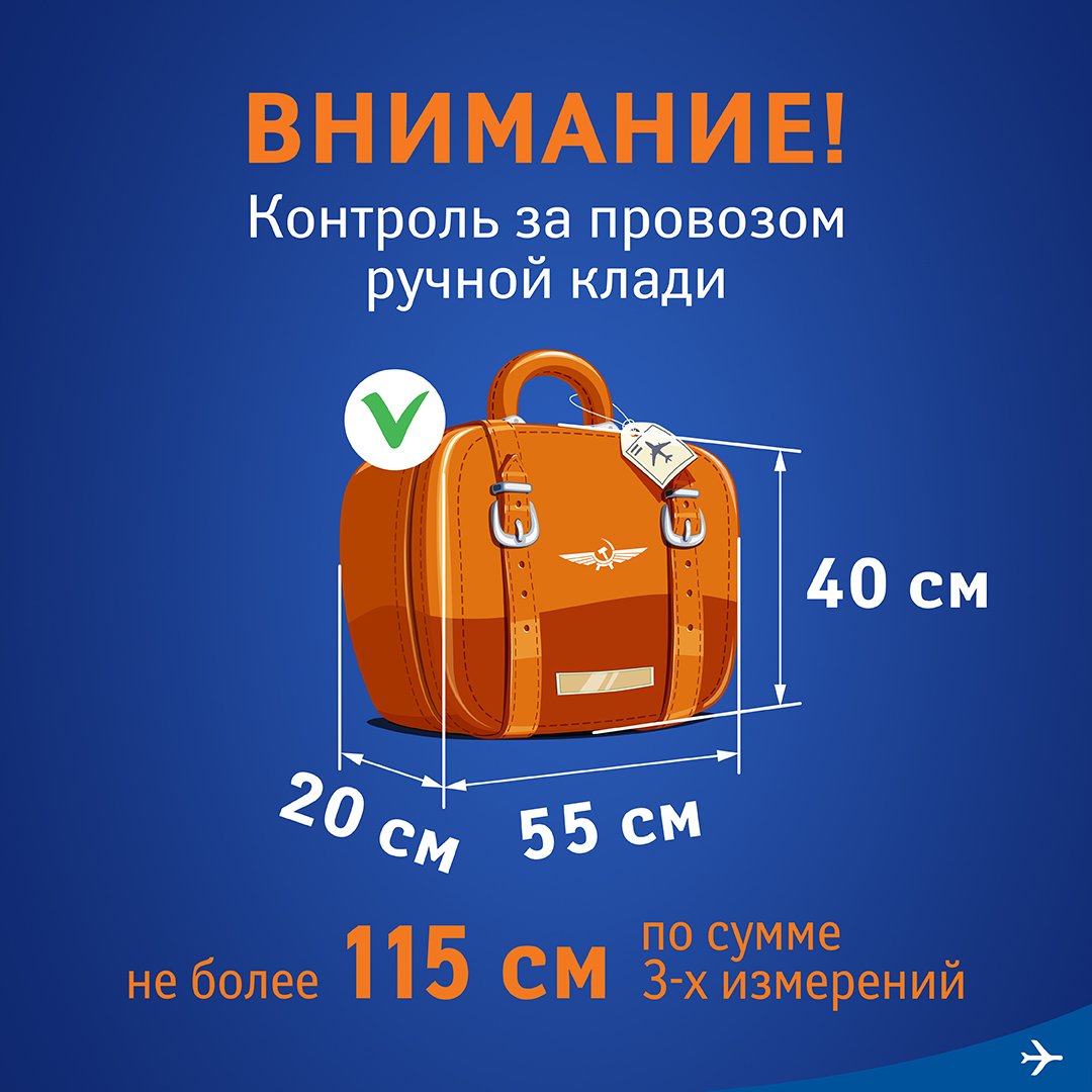 Важно: проверка габаритов проводится в аэропорту вылета. Если сумка превышает допустимые размеры или вес, её придётся сдавать в багаж с возможной доплатой.